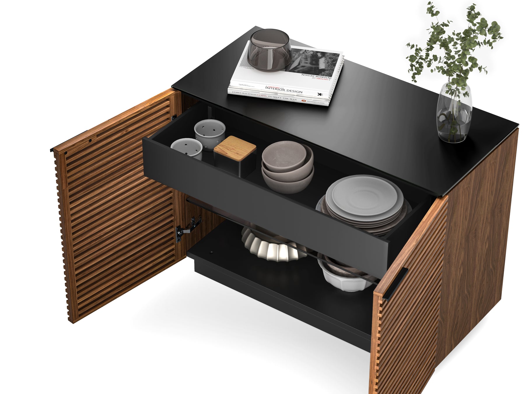 Experience the perfect balance of style and functionality with the BDI Corridor 8108 2-door storage cabinet. This modern design incorporates mid-century charm, louvered doors, and adaptable features for any space. It includes an adjustable glass shelf for customizable storage and a drawer that can be installed on the top or bottom of the cabinet for use as a storage drawer or even a serving tray. With integrated wire management and expandability options (Corridor models 8108 and 8109 only), this cabinet is the perfect blend of style and practicality for your home.