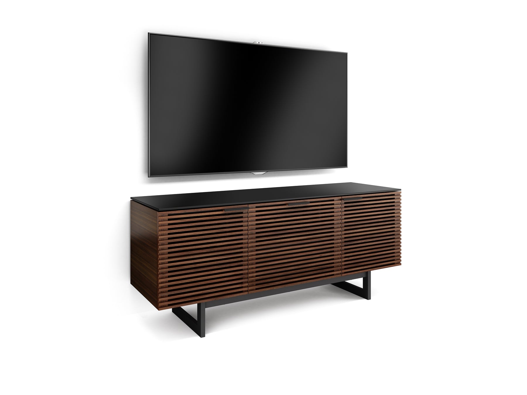 A sleek solution for media and style enthusiasts. The Corridor 8177 Media Console delivers high-performance storage in a refined footprint, with signature louvred doors, a soundbar-ready center drawer, and a satin-etched glass top. Built to organize, conceal, and impress—effortlessly.
