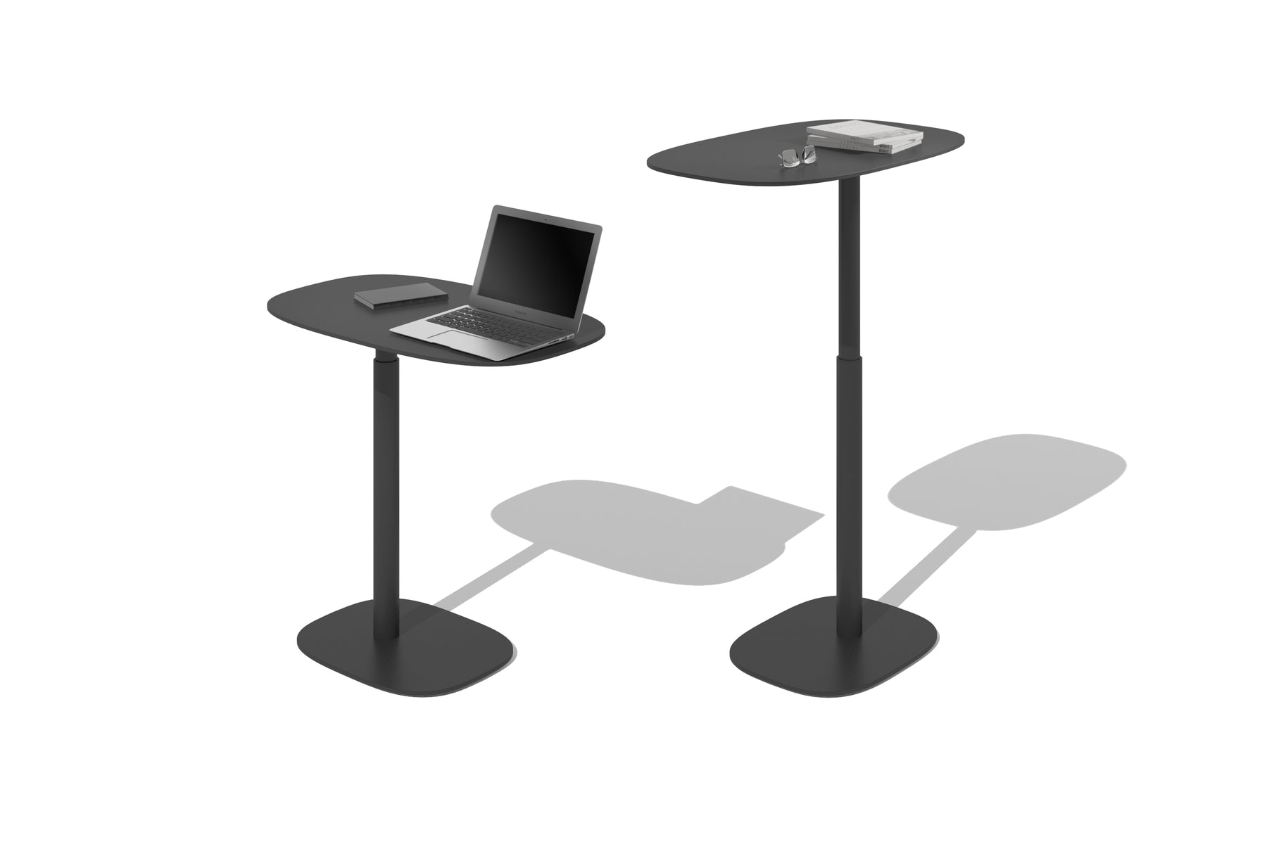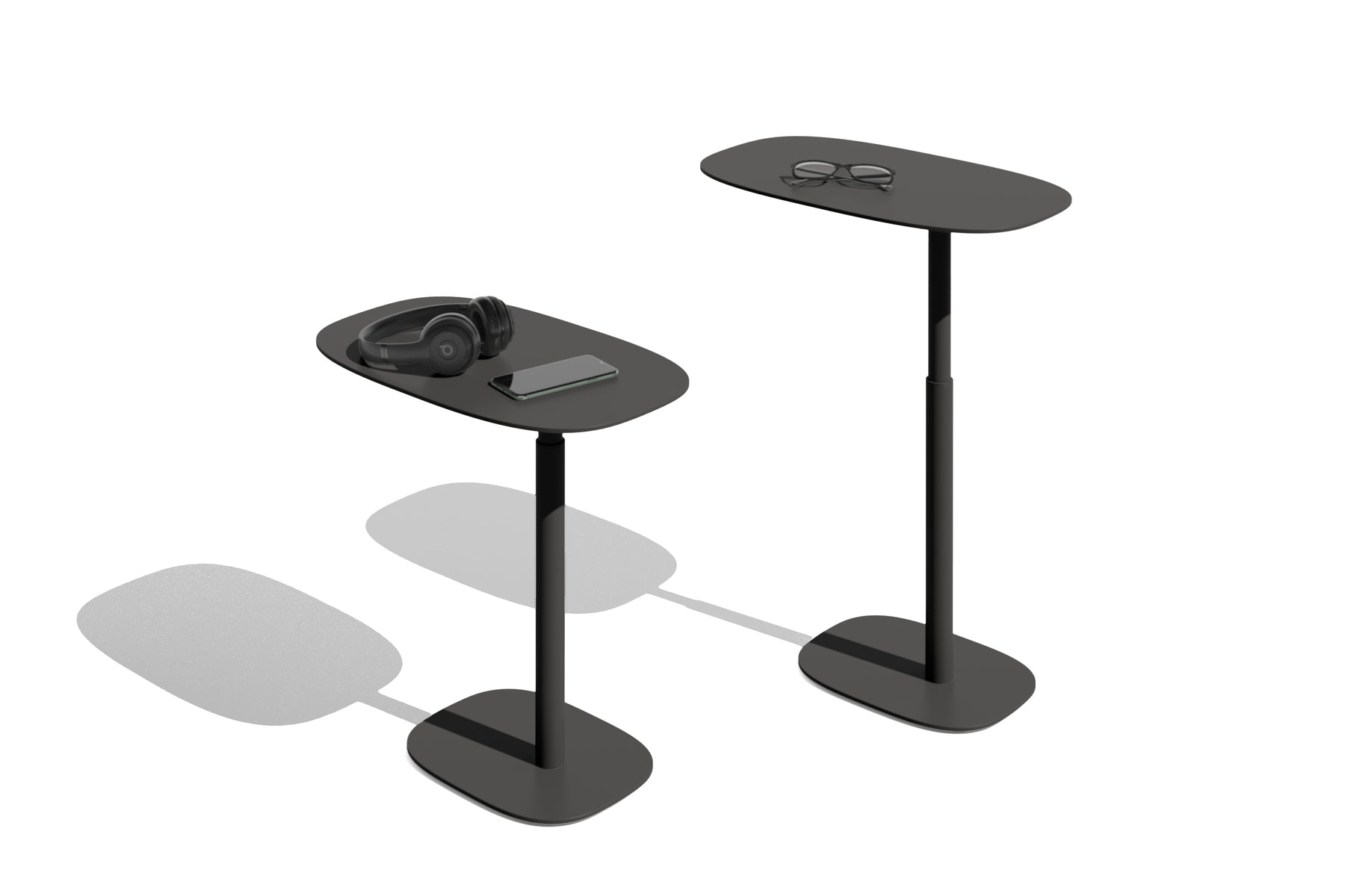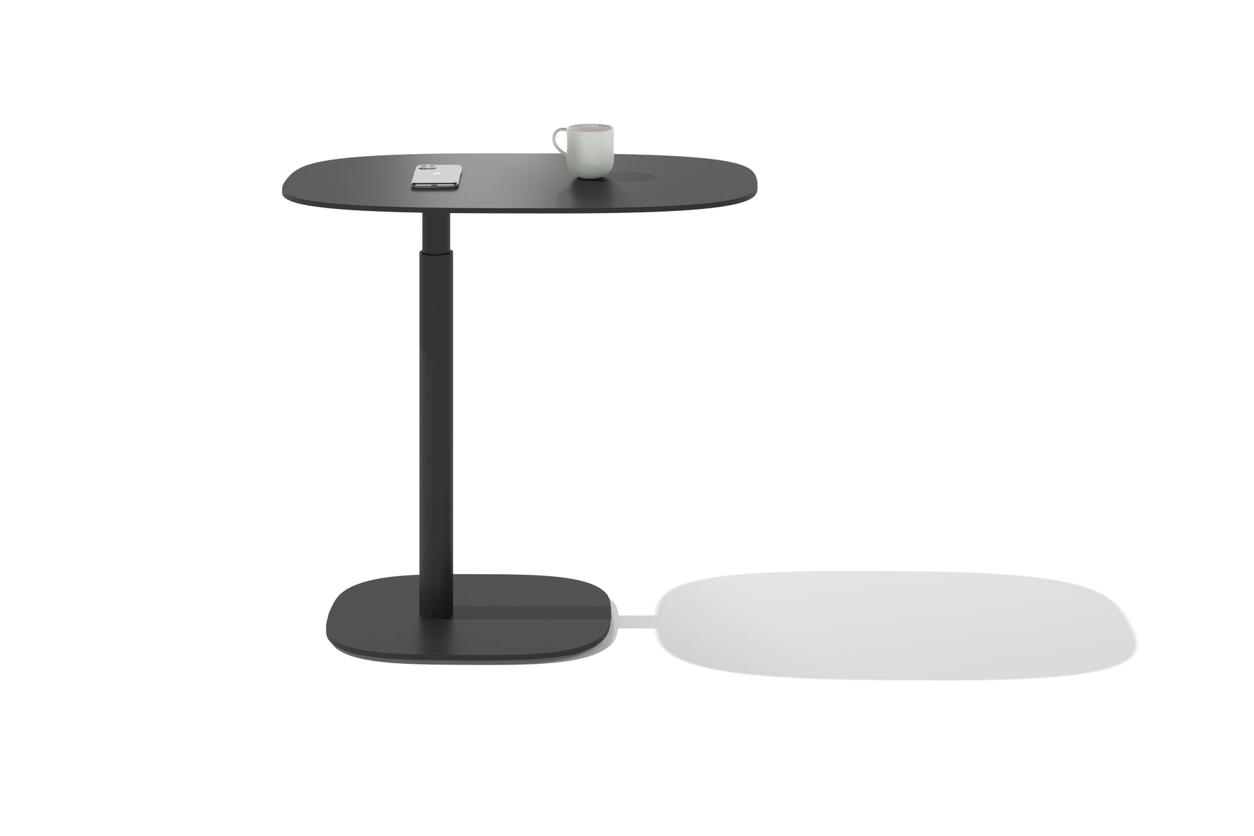 The BDI Serif 1045 height adjustable table's sleek metal top effortlessly glides to the perfect height on a smooth pneumatic cylinder. This portable table's slim and sturdy base slides easily under a sofa or chair, always keeping the versatile surface close at hand for work or play. Serif adjusts to a height range of 20.5" - 30.5" and can support up to 25 lbs.