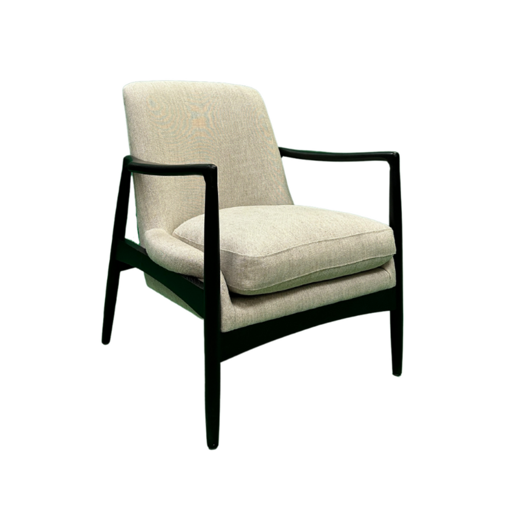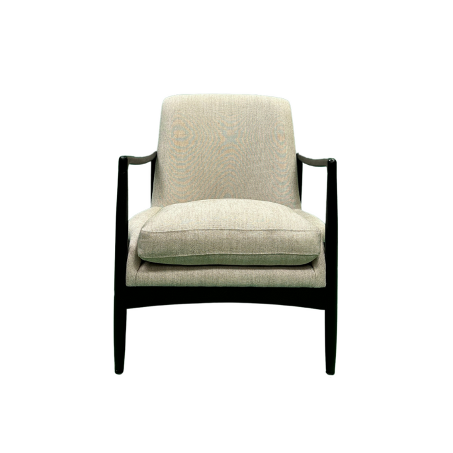 Introducing the Asheville Chair, an epitome of relaxation and mid-century modern elegance. With its striking, oversized arms and deeper seat, it's designed for maximum comfort. The sculpted oak frame adds an architectural touch to the plush upholstery, available in four exquisite finishes.  The solid oak wood frames, showcase slim tapers, gentle splays, and gracefully curved stretchers, adding a touch of sophistication to any space.