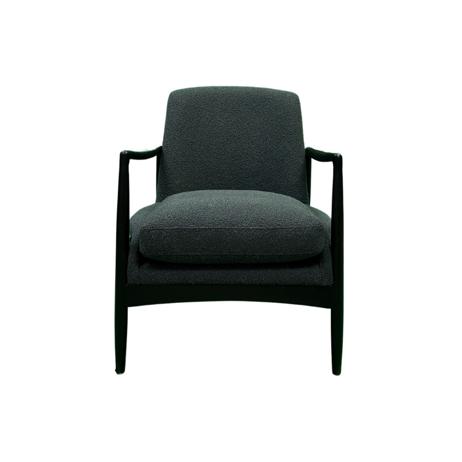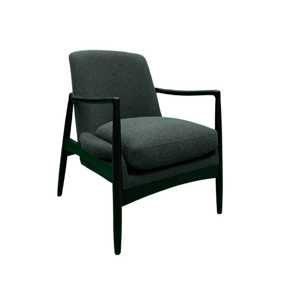 Introducing the Asheville Chair, an epitome of relaxation and mid-century modern elegance. With its striking, oversized arms and deeper seat, it's designed for maximum comfort. The sculpted oak frame adds an architectural touch to the plush upholstery, available in four exquisite finishes.  The solid oak wood frames, showcase slim tapers, gentle splays, and gracefully curved stretchers, adding a touch of sophistication to any space.