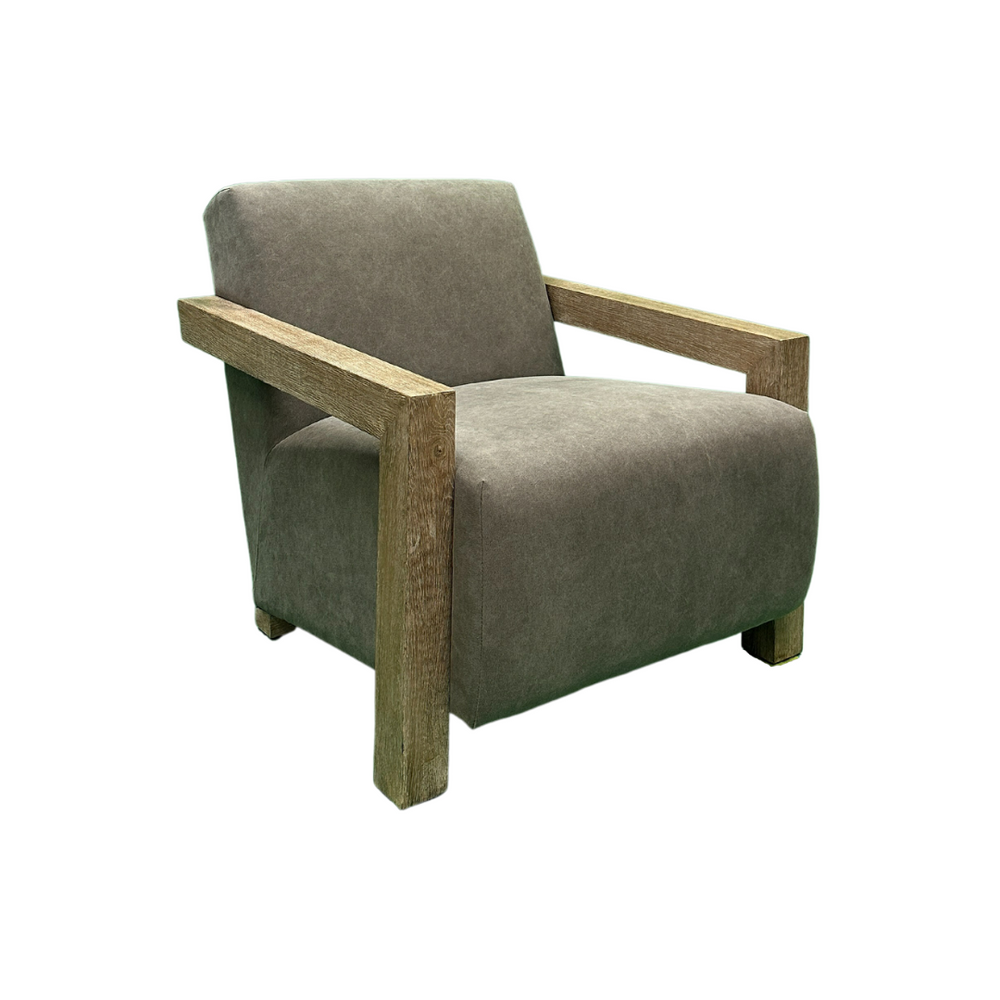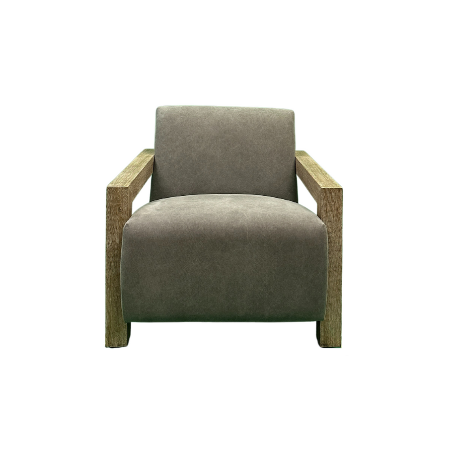 Introducing the Aura Chair: A sense of equilibrium. Robust, solid oak arms exude a bold presence at the front, yet at the chair's rear, they create the illusion of weightlessness. The blend of sleek lines finds harmony in the comfort of plush upholstery and a slightly reclined seat, inviting relaxation and ease.