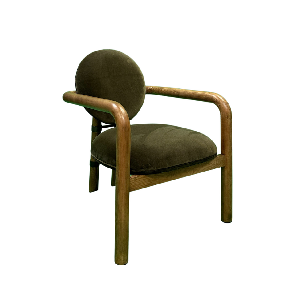 Introducing the Gatsby chair by Parker&Rome.   A sleek masterpiece that marries style and comfort seamlessly. Crafted with care, its smooth rounded arms blend harmoniously with a tri-leg configuration, lending an air of modern elegance.  With its artful blend of textures and minimalist design, the Gatsby Chair is a versatile statement piece for any space.