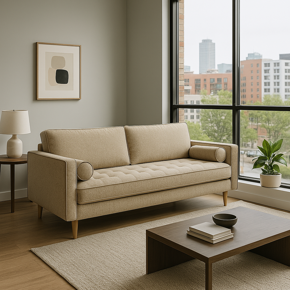 Discover the perfect blend of style and functionality with our Retreat Sofa. Designed with midcentury modern charm, this sofa features a stylish and timeless Cobblestone color. The soft premium fabric and tufted bench cushion provide both comfort and sustainability. Elevate your living space with this versatile piece.
